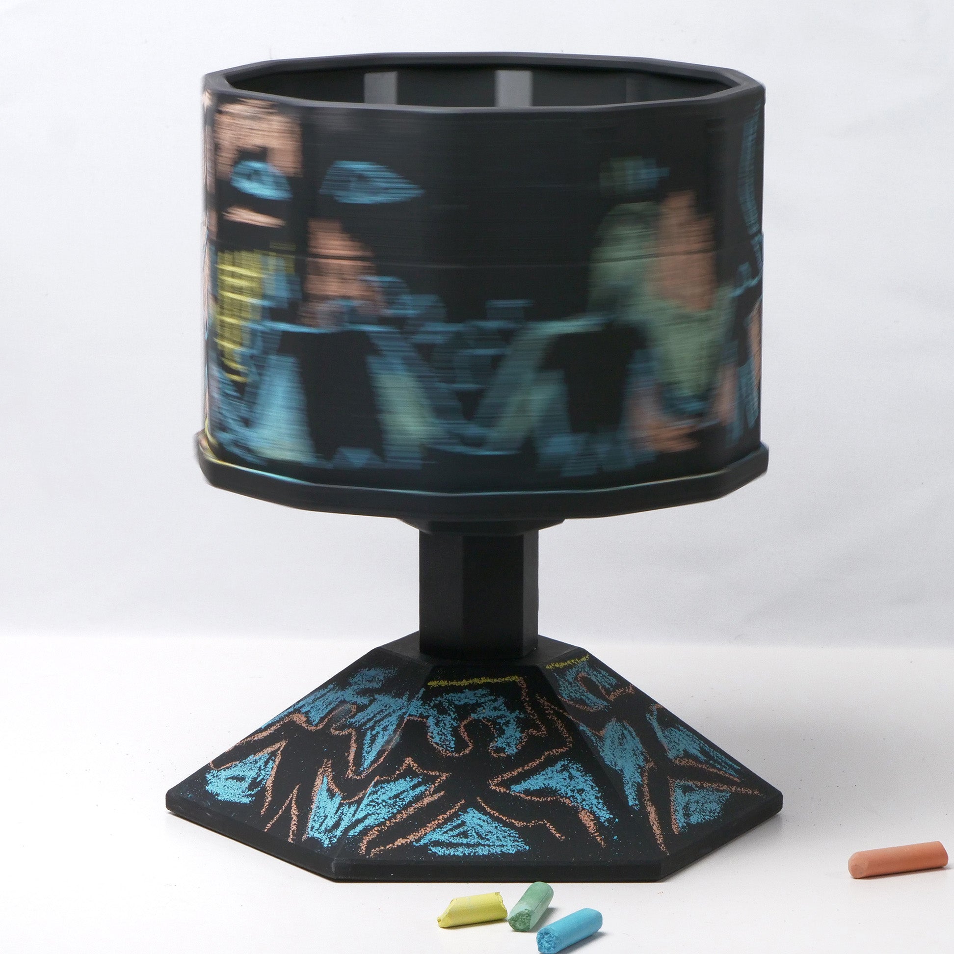 Il suffit de faire tourner le cylindre à la main de manière fluide pour que l'animation du Zootrope soit immédiatement visible à l'œil nu.
